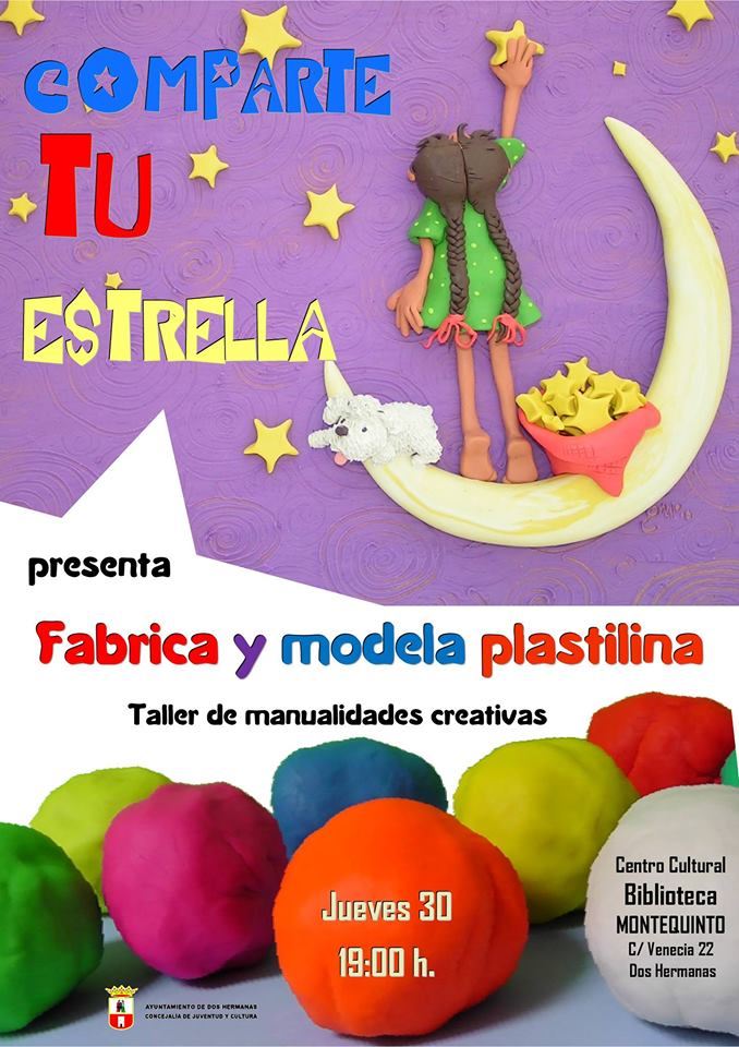 El jueves 30 de abril, a las 19:00 horas, en la Biblioteca de Montequinto, COMPARTE TU ESTRELLA presenta ‘Fabricación y modelado de plastilina’ a cargo del Taller de Manualidades Creativas que imparte Kenia Araujo Pineda en la Biblioteca de Montequinto.