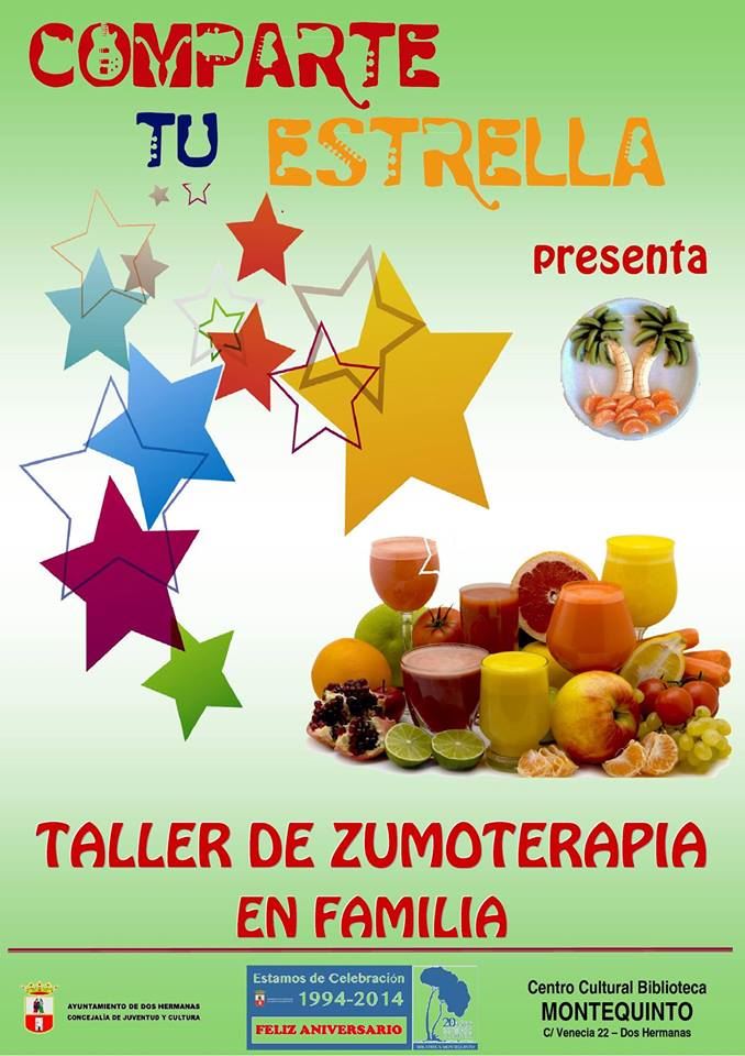 Esta tarde, a las 19:00 horas, un COMPARTE TU ESTRELLA muy refrescante y saludable para el verano: ‘Taller de zumoterapia en familia’ con Reme López, un taller orientado a promover hábitos saludables en nuestro entorno familiar, educativo y social utilizando ‘alimentos vivos’ (frutas, verduras y hortalizas…).
