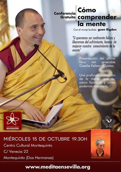El miércoles 15 de octubre, a las 19:30 horas, en el salón de actos del Centro Cultural Biblioteca de Montequinto, CONFERENCIA GRATUITA ‘Cómo comprender la mente’ impartida por el monje budista guen Rigden, organizada por el Centro Budista Kadampa Mahamudra.