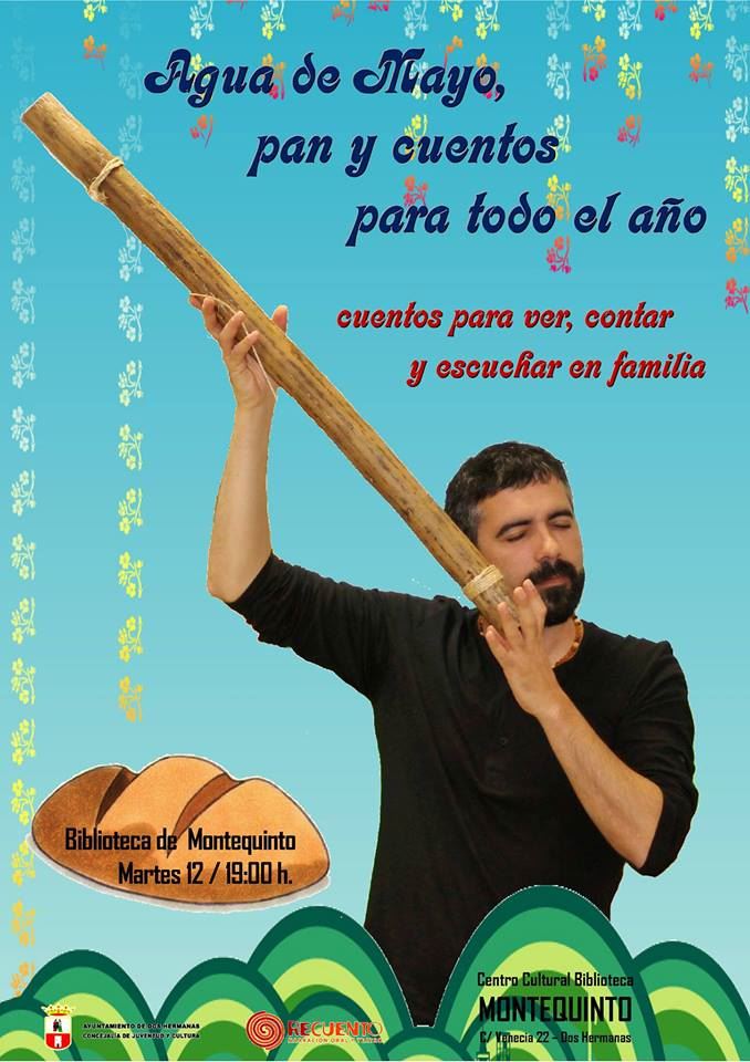 El martes 12 de mayo, a las 19:00 horas, en la Biblioteca de Montequinto, LAS BIBLIOTECAS CUENTAN ‘Agua de Mayo, pan y cuentos para todo el año’, cuentos para ver, contar y escuchar en familia con Recuento Narradores.