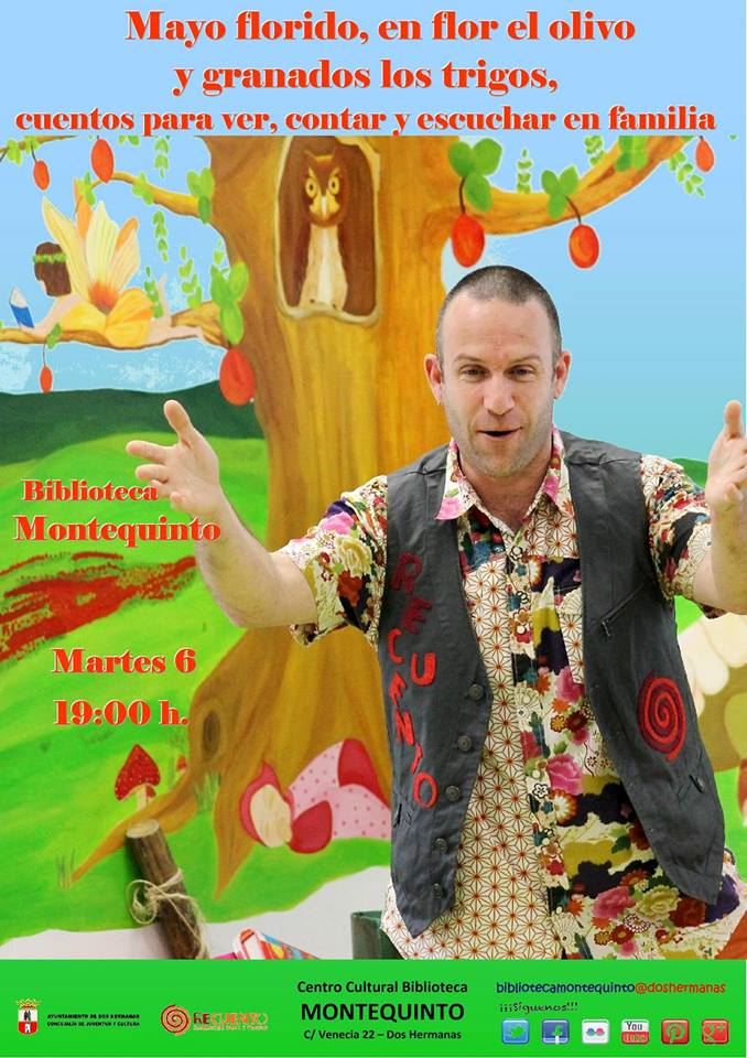 En el Centro Cultural-Biblioteca de Montequinto, el martes 6 de mayo, a las 19:00 horas, CUENTACUENTOS FAMILIAR ‘Mayo florido, en flor el olivo y granados los trigos’, cuentos para ver, contar y escuchar en familia con Recuento Narradores.