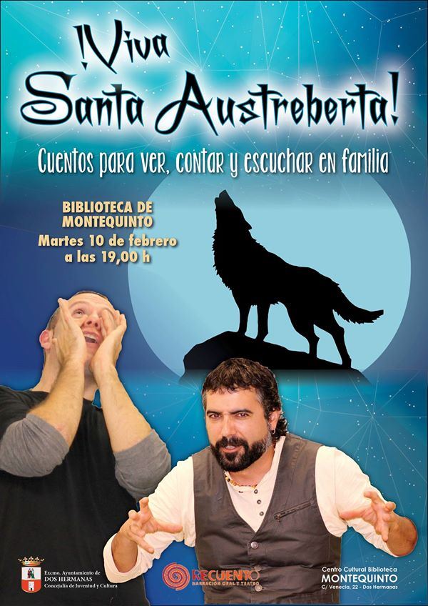 El martes 10 de febrero, a las 19:00 horas, en el Centro Cultural Biblioteca de Montequinto, una nueva entrega de Las Bibliotecas Cuentan con ¡Viva Santa AustreBerta!, cuentos para ver, contar y escuchar en familia con Recuento Narradores.