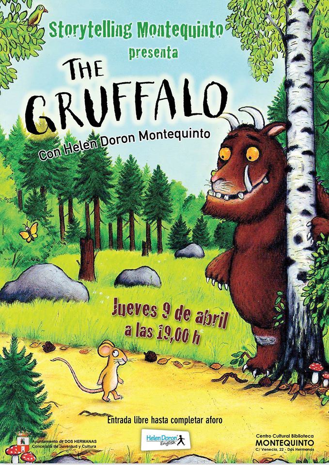 El jueves 9 de abril, en la Biblioteca de Montequinto, a las 19:00 horas, CUENTOS EN INGLÉS: Storytelling Montequinto presenta ‘The Gruffalo’, cuentos teatralizados en inglés en colaboración con Helen Doron Montequinto.