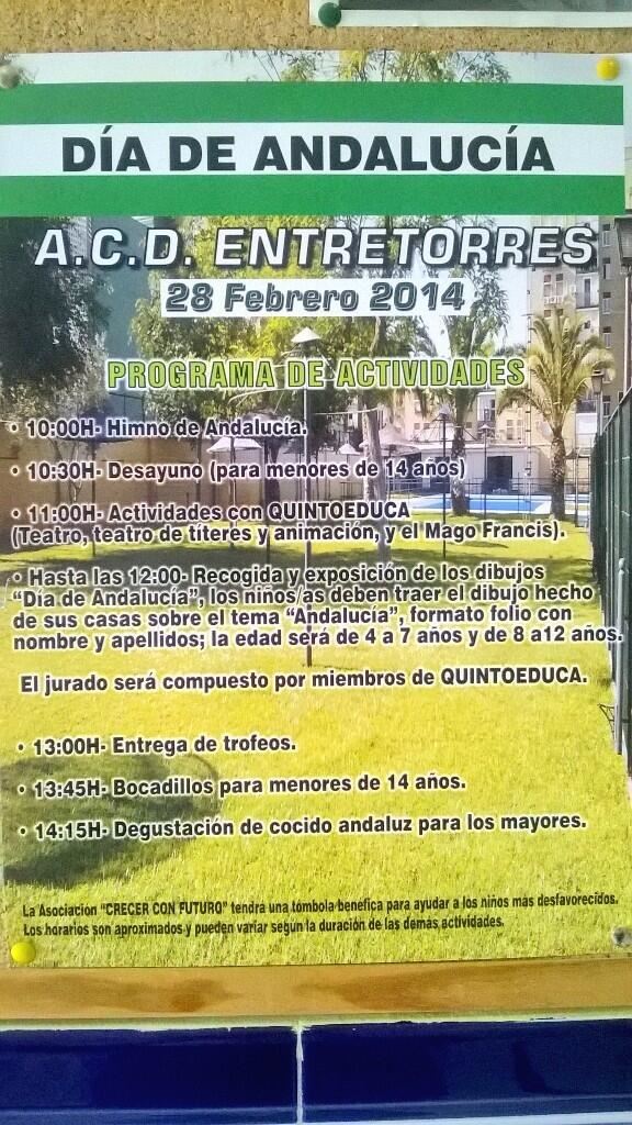 La Asociación Club Deportiva Entretorres ha preparado una serie de actividades para conmemorar el 28 de Febrero el día de Andalucía.