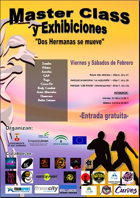 Durante el mes de Febrero, se realizarán en diferentes puntos actividades coordinadas por jóvenes del programa Emple@joven que se encuentran trabajando dentro de la línea de promoción del turismo y el deporte. La primera de estas jornadas en Montequinto será el próximo Sábado, 7 de febrero, en el Parque de los Pinos, de 10:00 a 14:00 horas. Se ofrecerá a los asistentes clases de Pilates, Aikido, entrenamiento funcional, merengue y flamenco. La entrada será gratuita.