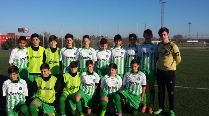 Desde el primer minuto el equipo que dirige Marcos y Miguel salió muy concentrado e intenso en este partido. El primer gol lo metía Mario Mora en el minuto 2 tras recibir un pase en profundidad. El equipo pudo marcar algún gol más en estos primeros minutos, pero en una desafortunada jugada nos haciamos en propia puerta lo que suponía el empate. Pero el equipo siguió con el mismo guión con el que había empezado, con una defensa muy contundente y con mucha verticalidad de cara a la portería contraria. Juanma le dió muchos quebraderos de cabeza a la defensa nervionense durante toda la tarde. Mario Mora por su parte estuvo muy enchufado y acertado, de tal manera que marcó dos grandes goles antes de que terminara el primer tiempo haciendo un hat-trick.