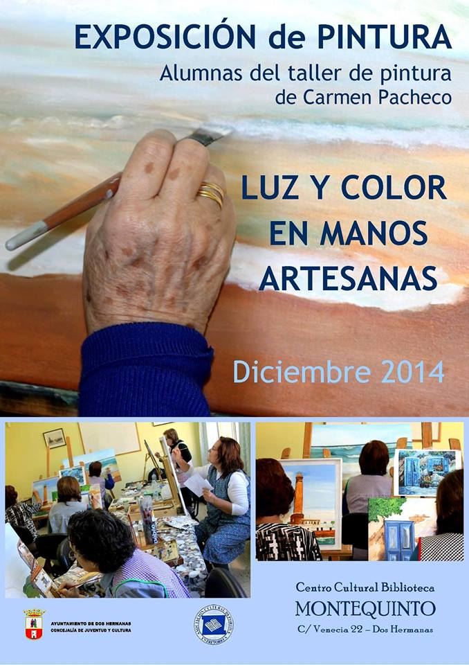 Del 4 al 31 de Didiembre, en el Centro Cultural Biblioteca de Montequinto, podremos disfrutar de una exposición bajo el nombre de «Luz y Color en Manos Artesanas», del taller de pintura que imparte Carmen Pacheco Sanchez en la ACD «Entretorres» de Montequinto.