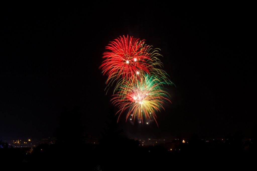 El proceso consiste en disparar la camara con «larga exposición», es decir, que el objetivo permanezca abierto varios segundos (modo bulb para los iniciados) y mediante disparador remoto (para evitar movimientos indeseados) abrir y cerrar el objetivo durante los momentos exactos que queramos captar, durante muy poco tiempo, evitando que éste sea el momento que estalla la pirotecnia lo que provocaría un fogonazo en la imagen. Para aquellos que no poseían el citado disparador se explico in-situ un procedimiento rústico pero igual de efectivo que consistía en dejar el objetivo abierto entre 15 y 30segundos y dejar tapado el objetivo (sin tocarlo) con cualquier cosa, una cartulina o la propia cartera, y liberarlo en el instante deseado. Podemos quitar lo que usemos para cubrir el objetivo varias veces para superponer unos fuegos a otros pero nunca debemos mover la cámara ya que las instantáneas saldrían movidas. Es indispensable por tanto el uso de trípode en este tipo de fotografías.