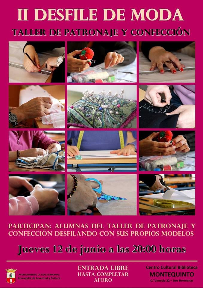 El jueves 12 de junio, a las 20:00 horas, las alumnas del Taller de Patronaje y Confección de la Asociación de Mujeres ‘5 de abril’ que se imparte en el Centro Cultural Biblioteca Pública Municipal «Miguel Delibes» (Montequinto-Dos Hermanas) organiza el II DESFILE DE MODA 2014.