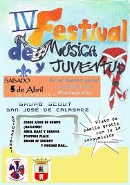 El sábado 5 de abril, a partir de las 12:00 horas, ‘IV Festival de Música y Juventud’, organizado por el Grupo Scout San José de Calasanz de Montequinto (Dos Hermanas), que tendrá lugar en el Centro Cultural-Biblioteca de Montequinto