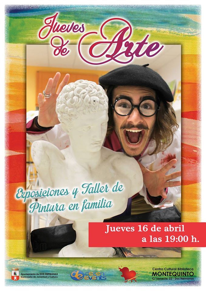 El jueves 16 de abril, a las 19:00 horas, en la Biblioteca de Montequinto, JUEVES de ARTE, programa familiar de visitas a las exposiciones y taller de pintura en familia con Jorge Mejías Garrón y Decen Events.