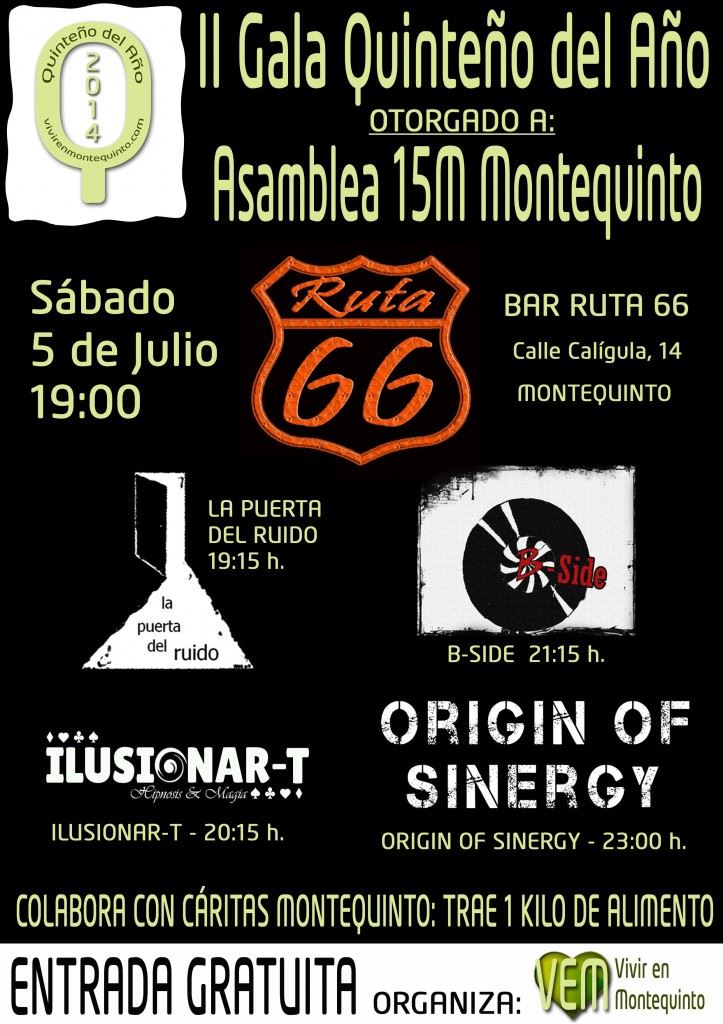 La Gala para homenajear a nuestros ganadores será el próximo Sábado, 5 de Julio, en el Bar Ruta 66 donde podremos disfrutar de una tarde-noche con las actuaciones en directo de los grupos locales La Puerta del Ruido, B-Side y Origin of Sinergy. Además de los chicos de Ilusionar-T que nos sorprenderán con su magia. La Gala comenzará a las 19:00 h. y la entrada será totalmente gratuita. Este año hemos pedido a los asistentes que quieran, de forma voluntaria, que lleven un kilo de alimentos que serán donados a Cáritas de Montequinto para ayudar a esas familias del barrio que tanto lo necesitan en estos momentos, nos hemos propuesto llegar al menos a 100 kilos de alimentos recogidos, nosotros vamos a poner los 10 primeros kilos.
