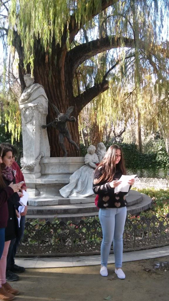 Posteriormente, el grupo se dirigió al Parque de María Luisa para visitar la glorieta que lleva su nombre y finalizar con nuevos recitados la actividad.