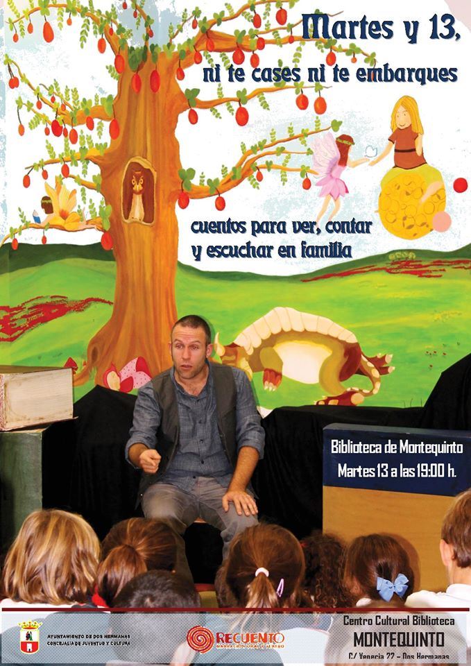 El Martes 13 de Enero, a las 19:00 horas, en el Centro Cultural Biblioteca de Montequinto, una nueva entrega de Las Bibliotecas Cuentan, esta semana nos trae el cuento «Martes y 13, ni te cases ni te embarques», cuentos para ver, contar y escuchar en familia con Recuento Narradores.