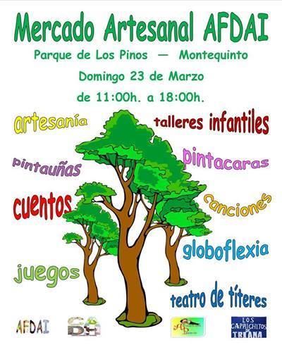 El próximo Domingo día 23 a partir de las 11:00 horas, podremos disfrutar en el Parque de los Pinos, de un «Mercadillo Artesanal» organizado por AFDAI .