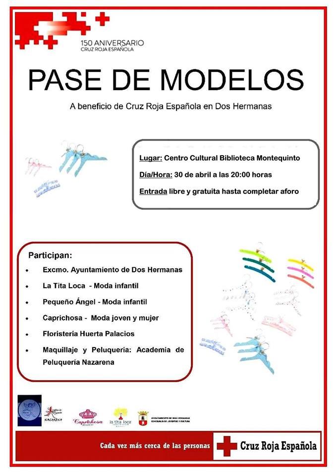 El miércoles 30 de abril, a las 20:00 horas, en el Centro Cultural-Biblioteca de Montequinto, tendrá lugar un ‘Pase de Modelos’ a beneficio de Cruz Roja Española en Dos Hermanas (Entrada libre hasta completar aforo)