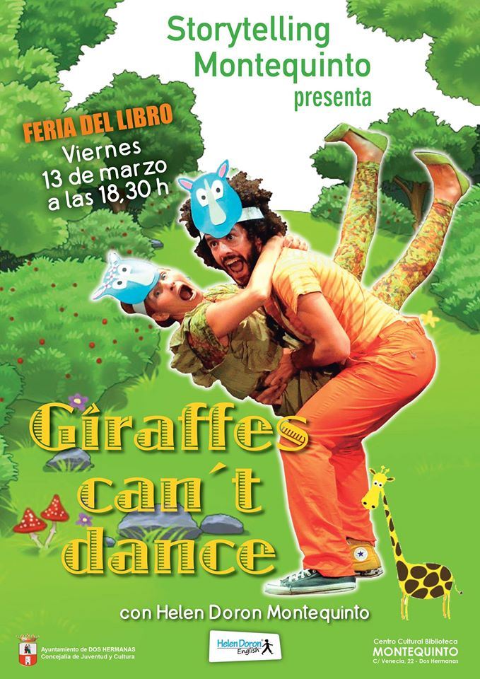 El viernes 13 de marzo, a las 18:30 horas en la continúan las actividades en Feria del Libro de Montequinto (Dos Hermanas), esta vez a cargo de STORYTELLING MONTEQUINTO que presenta ‘Giraffes can’t dance’, cuentos teatralizados en inglés en colaboración con Helen Doron Montequinto.