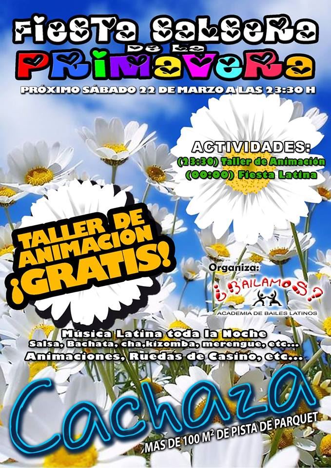 El broche final del sábado viene de la mano de Cachaza, en C/ Numa, que a las 23:00 tienen preparada una Fiesta Salsera con un Taller de animación lleno de actividades, como Ruedas cubanas, Salsa, Bachata, Kizomba, ect en colaboración con la academia Bailamos.