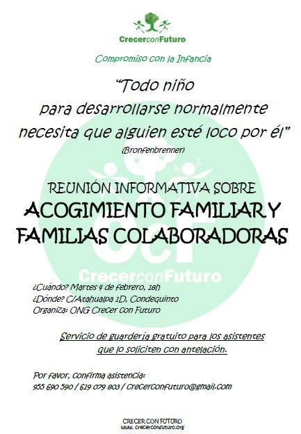 Mañana Martes, 4 de Febrero, a las 18:00 h. La ONG Quinteña Crecer con Futuro organiza una charla informativa sobre acogimiento familiar y familias colaboradoras.