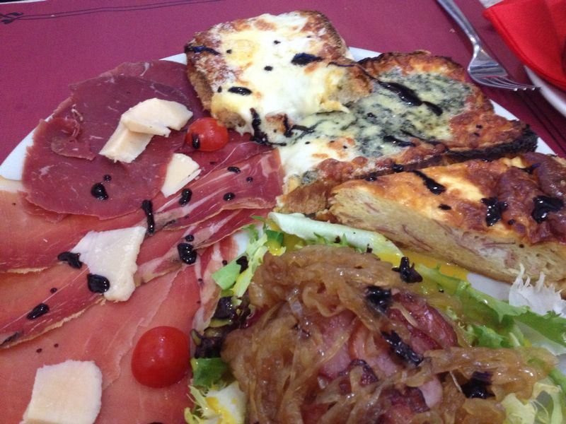 Comenzamos la experiencia con un plato de entrantes en el que había Prosciutto San Daniele, algo parecido a nuestro jamón ibérico; Bresaola, otro tipo de chacina parecido a nuestro lomo; Parmesano, este es quizás mi queso favorito, con un poco de vinagre de módena por encima esta riquísimo, si no lo habéis probado nunca os lo recomiendo; Involtini Ristorantino, un queso envuelto en bacón y con cebolla caramelizada por encima, aunque parezca mentira, la cebolla caramelizada era quizás lo que mas me gustó de todo el plato, estaba impresionante, si os gusta habitualmente tenéis que probar la que hace el chef Felipe de verdad.