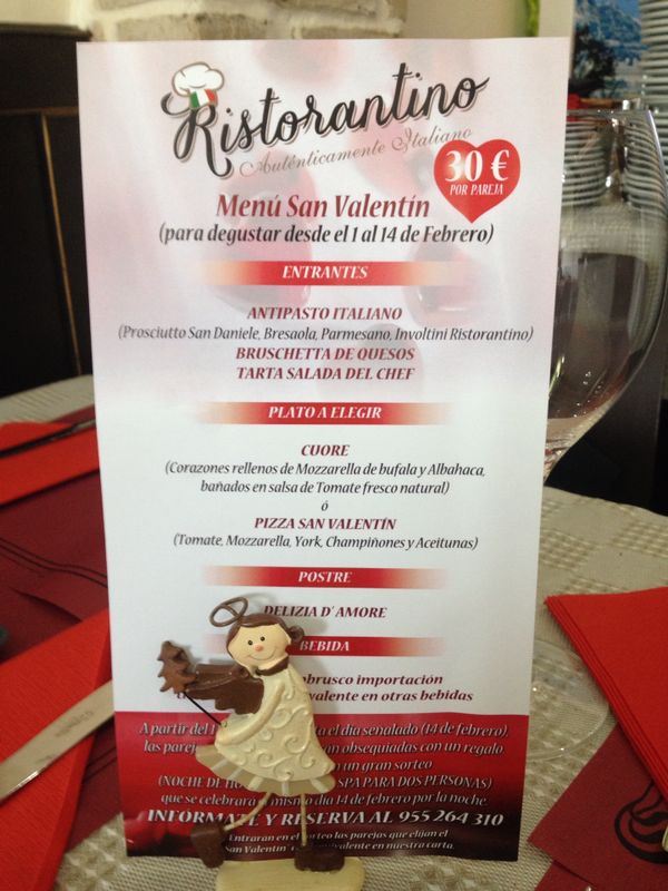 El pasado Martes, 4 de Febrero, con motivo de nuestro segundo aniversario en las redes, Orlando, dueño de Ristorantino, tuvo el detalle de invitarnos a probar su menú San Valentín para conmemorar ese día. Y la verdad es que….como siempre…quedamos encantados.