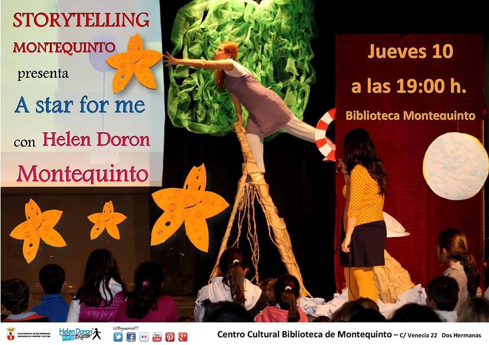 El jueves 10 de abril, a las 19:00 horas, en el Centro Cultural-Biblioteca de Montequinto, Cuenta Cuentos en Ingles: Storytelling Montequinto presenta ‘A star for me’, cuentos teatralizados en inglés en colaboración con Helen Doron Montequinto.