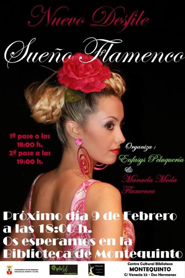 El domingo 9 de febrero, ‘Sueño Flamenco’ , evento de MODA FLAMENCA organizado por Énfasys Peluquería con la colaboración de Manuel Moda Flamenca, en el Centro Cultural Biblioteca de Montequinto.