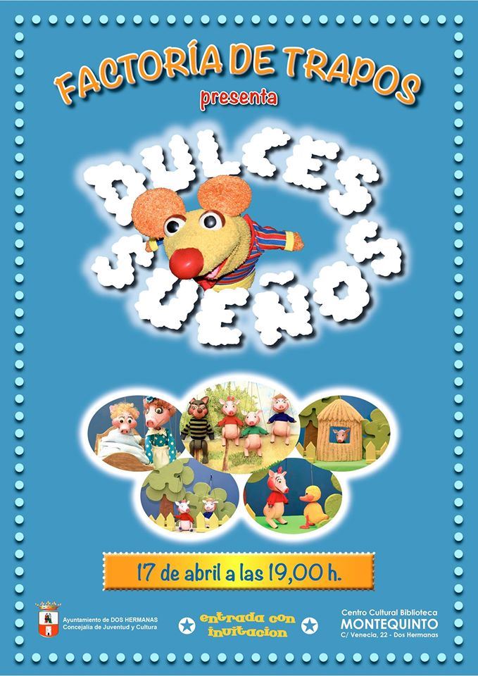 El viernes 17 de abril, a las 19:00 horas, en la Biblioteca de Montequinto TEATRO DE TÍTERES con la representación de la obra ‘Dulces Sueños’ a cargo de la compañía Factoría de Trapos.