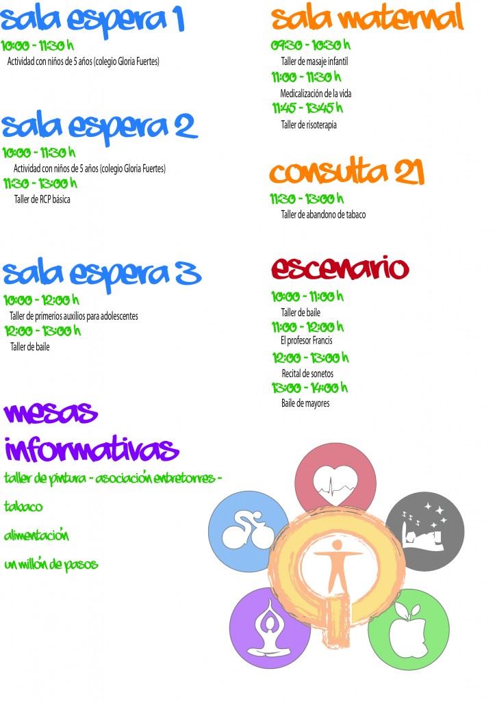 Para ello, desde las 10:00 de la mañana, había instaladas una serie de mesas informativas, para poder indicar a cualquier ciudadano que se acerara como participar de las actividades, como talleres de pintura, información para corregir el mal habito de tabaco, y la puesta en marcha de una iniciativa llamada » un millón de pasos», que tenia la meta de iniciarnos en el buen habito de andar.